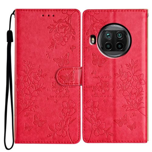 Funda de Cuero con Diseño de Mariposas y Flores para Xiaomi Mi 10T Lite 5G (Rojo)