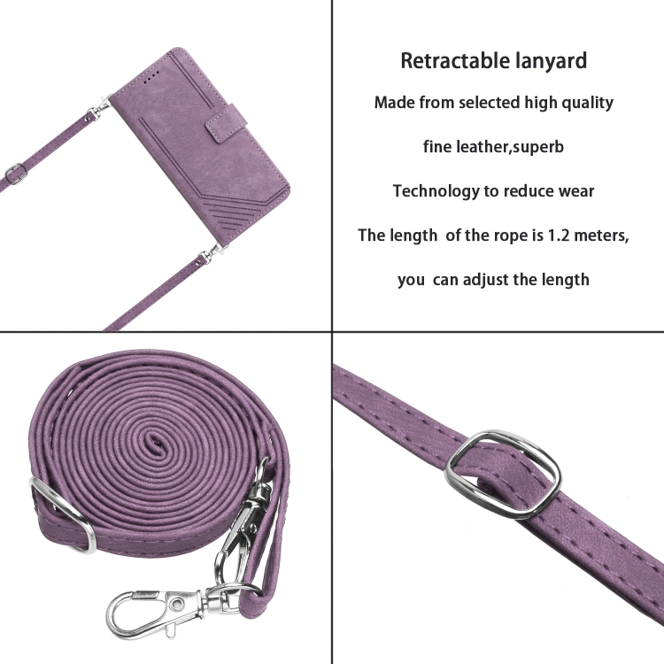 Funda de Cuero con Diseño de Rayas y Cordón para Honor X7C (Morado)