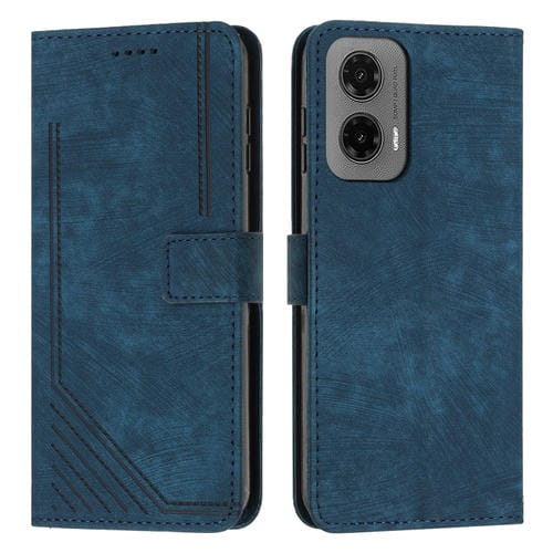 Funda de Cuero Motorola Moto G35 con Diseño de Rayas y Tacto Agradable (Azul)