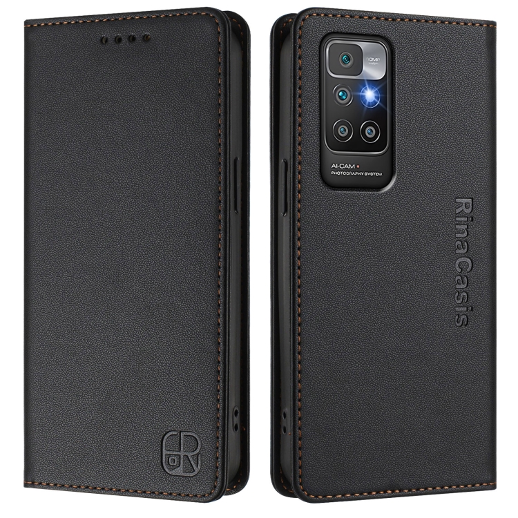 Funda de Cuero con Doble Pliegue y Succión Magnética para Redmi 10 4G 2021/2022 Global Rc01 (Negra)