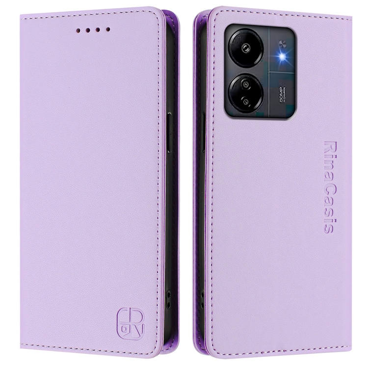 Funda de Cuero con Doble Pliegue y Succión Magnética para Redmi 13C 5G/4G Global Rc01 (Morado Claro)