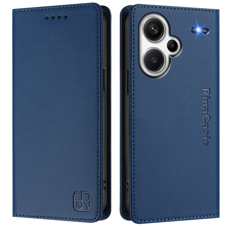 Funda de Cuero con Doble Pliegue y Succión Magnética para Redmi Note 13 Pro+ 5G Global Rc01 (Azul Oscuro)