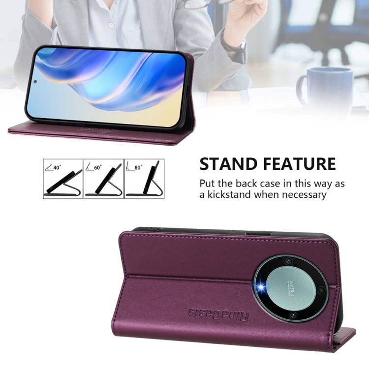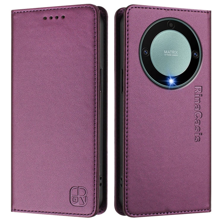 Funda de Cuero con Doble Pliegue y Succión Magnética RFID para Honor X40 / X9A / Magic5 Lite Rc01 (Violeta)