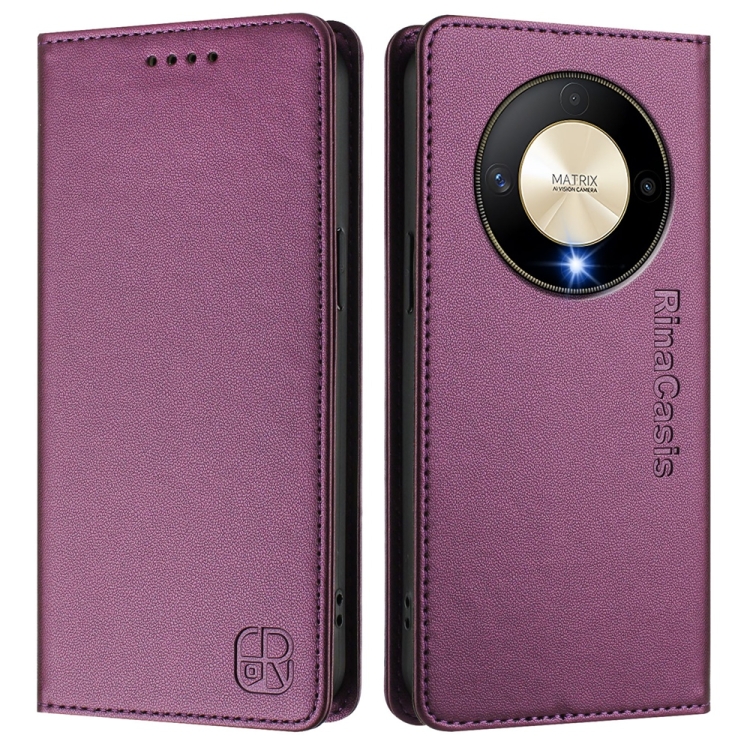 Funda de Cuero con Doble Pliegue y Succión Magnética Rfid para Honor X9B y Magic6 Lite 5G Global Rc01 (Violeta)