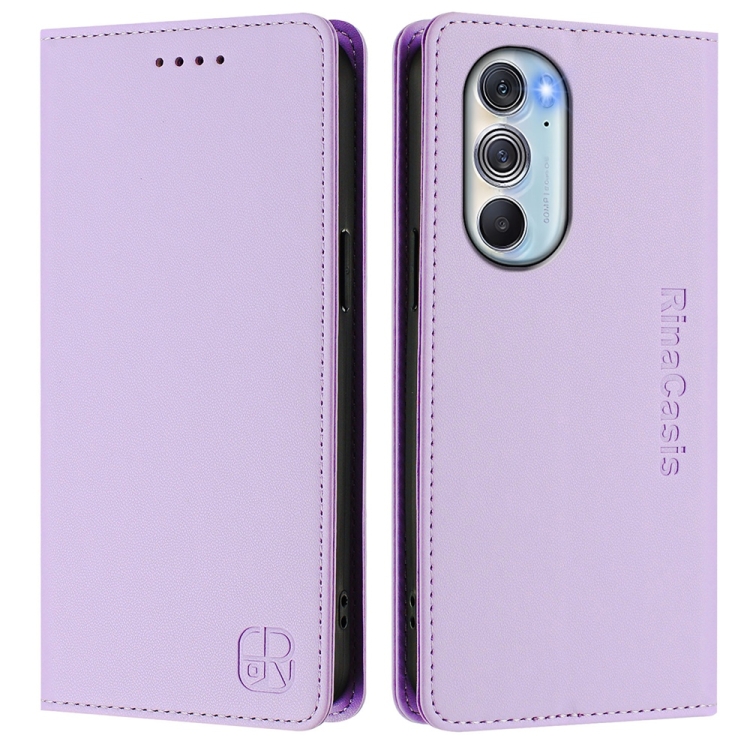 Funda de Cuero Motorola Edge 30 Pro Edge X30 Rc01 con Doble Pliegue y Succión Magnética (Morado Claro)