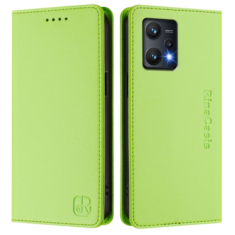 Funda de Cuero con Doble Pliegue y Succión Magnética para Teléfono Realme 9 Pro 5G Global / 9 5G Eu Version Rc01 (Verde Hierba)