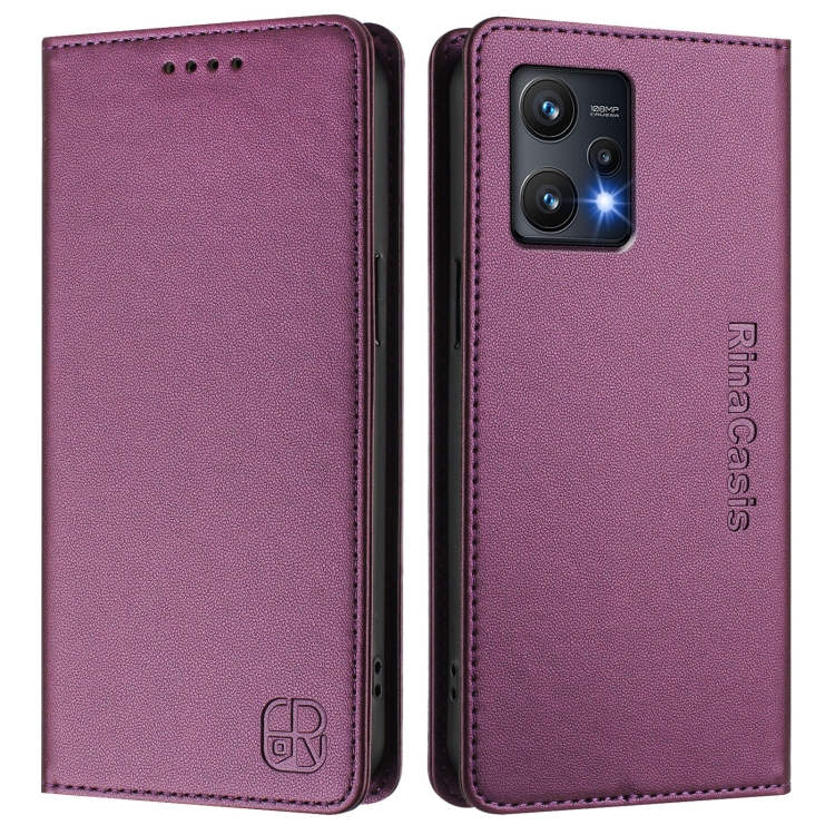 Funda de Cuero con Doble Pliegue y Succión Magnética para Teléfono Realme 9 Pro 5G Global / 9 5G Eu Version Rc01 (Violeta)