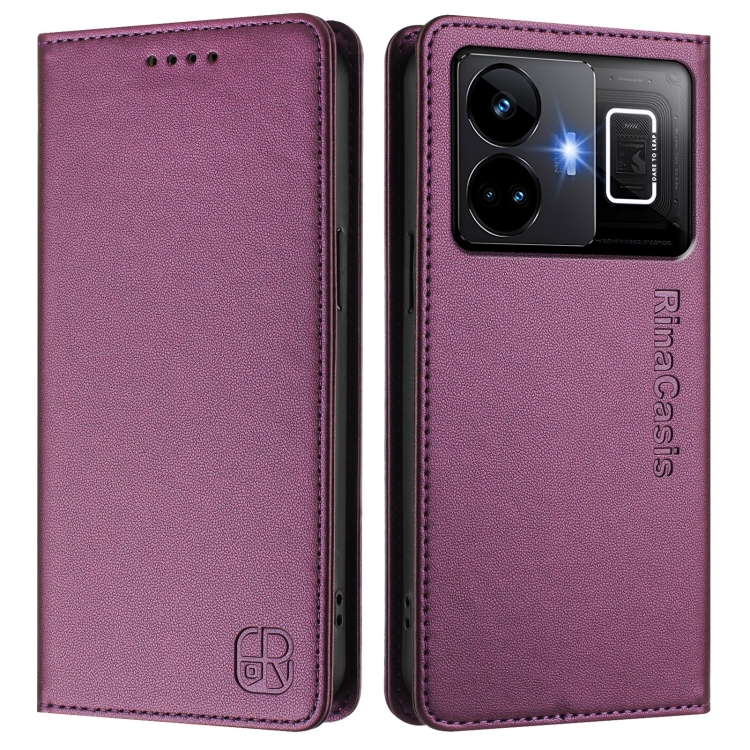 Funda de Cuero con Doble Pliegue y Succión Magnética para Teléfono Realme Gt3 5G / Gt Neo 5 240W Rc01 (Violeta)
