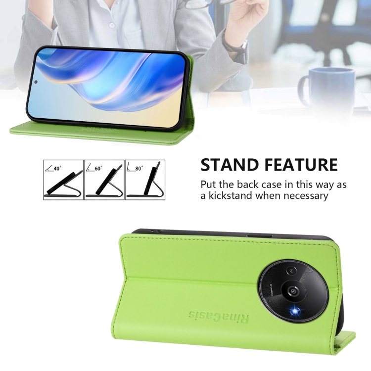 Funda de Cuero con Doble Pliegue y Succión Magnética para Teléfono Redmi A3 / Xiaomi Poco C61 4G Global Rc01 (Verde Hierba)