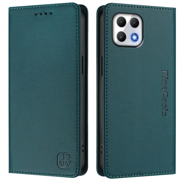 Funda de Cuero T-Mobile Revvl 7 5G Rc01 con Doble Pliegue y Succión Magnética (Verde Oscuro)