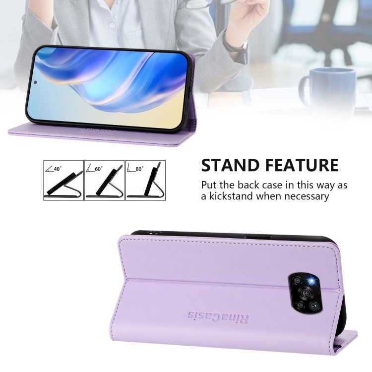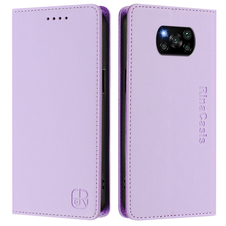 Funda de Cuero con Doble Pliegue y Succión Magnética para Teléfono Xiaomi Poco X3 / X3 Nfc / X3 Pro Rc01 (Morado Claro)