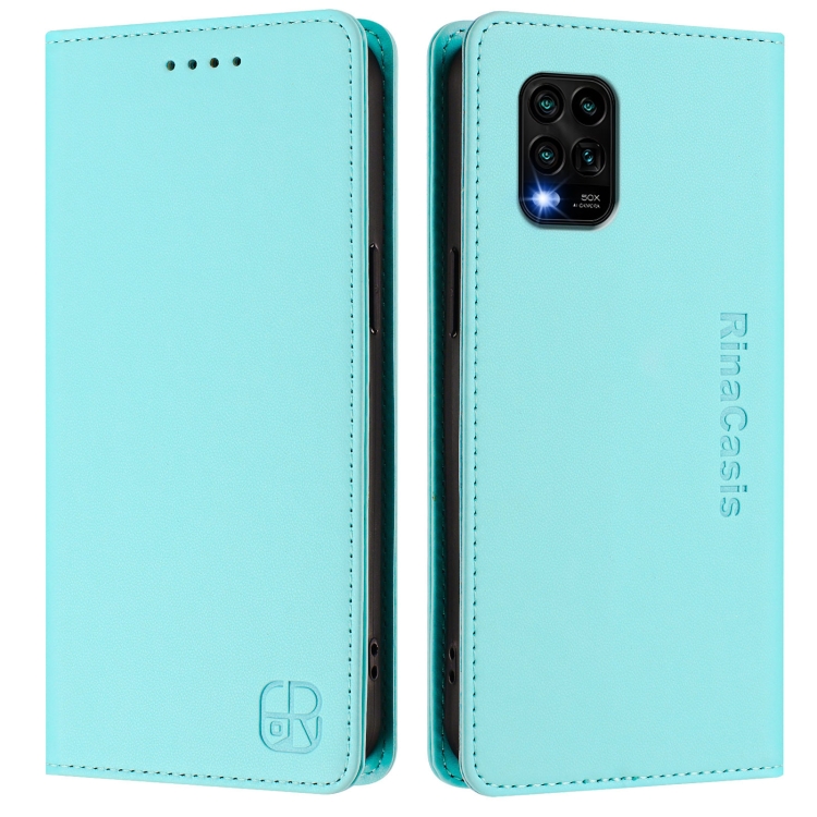 Funda de Cuero con Doble Pliegue y Succión Magnética para Xiaomi Mi 10 Lite Rc01 (Verde Menta)