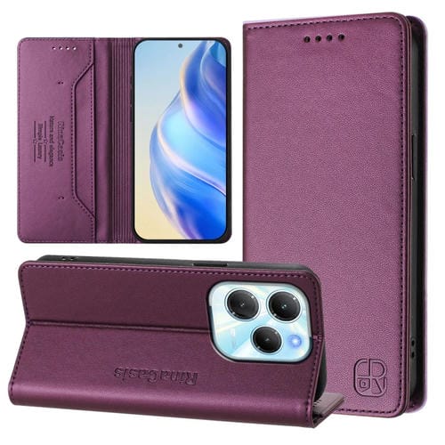 Funda de Cuero con Doble Pliegue y Succión Magnética Rfid para Infinix Hot 40 4G / Hot 40 Play Rc01 (Violeta)