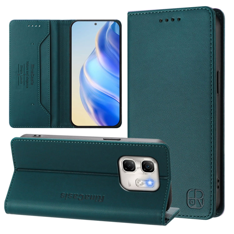 Funda de Cuero Doble Pliegue Succión Magnética Rfid para Infinix Hot 50I 5G Smart 9 4G Rc01 (Verde Oscuro)