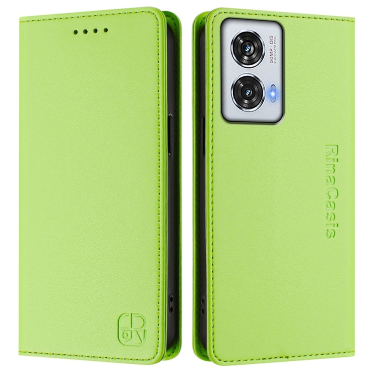 Funda de Cuero con Doble Pliegue y Succión Magnética RFID para Motorola Edge 50 Fusion Rc01 (Verde Hierba)