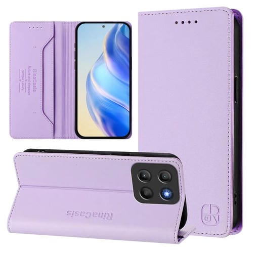 Funda de Cuero con Doble Pliegue y Succión Magnética Rfid para Motorola Moto G15 Rc01 (Morado Claro)