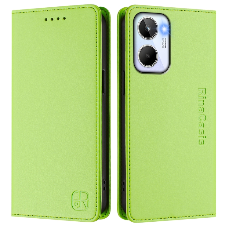 Funda de Cuero con Doble Pliegue y Succión Magnética Rfid para Realme 10 4G Global Rc01 (Verde Hierba)