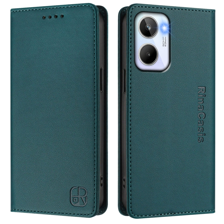 Funda de Cuero con Doble Pliegue y Succión Magnética Rfid para Realme 10 4G Global Rc01 (Verde Oscuro)