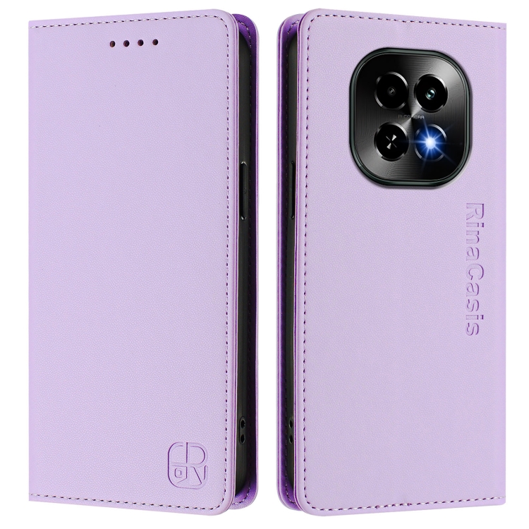 Funda de Cuero con Doble Pliegue y Succión Magnética Rfid para Realme C63 5G Global Rc01 (Morado Claro)