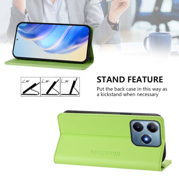 Funda de Cuero con Doble Pliegue y Succión Magnética Rfid para Realme C63/C61 4G Global Rc01 (Verde Hierba)