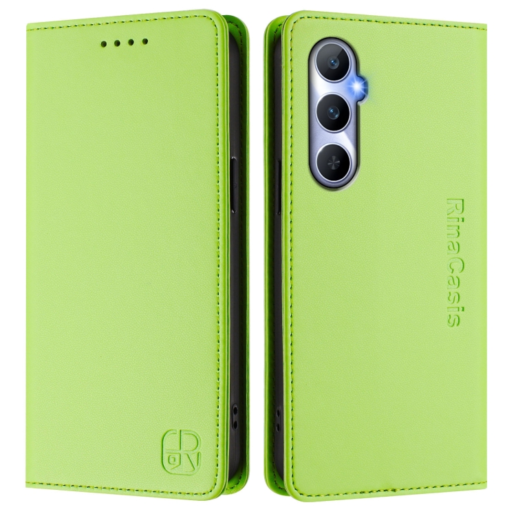 Funda de Cuero con Doble Pliegue y Succión Magnética Rfid para Realme C65 4G Global Rc01 (Verde Hierba)
