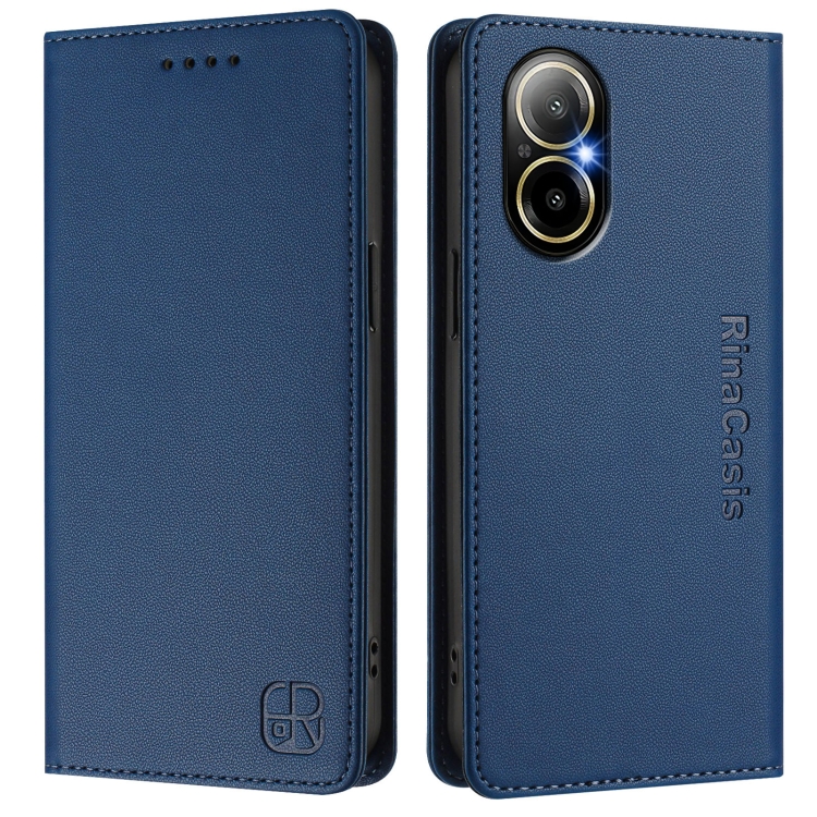Funda de Cuero con Doble Pliegue y Succión Magnética Rfid para Realme C67 4G Global Rc01 (Azul Oscuro)