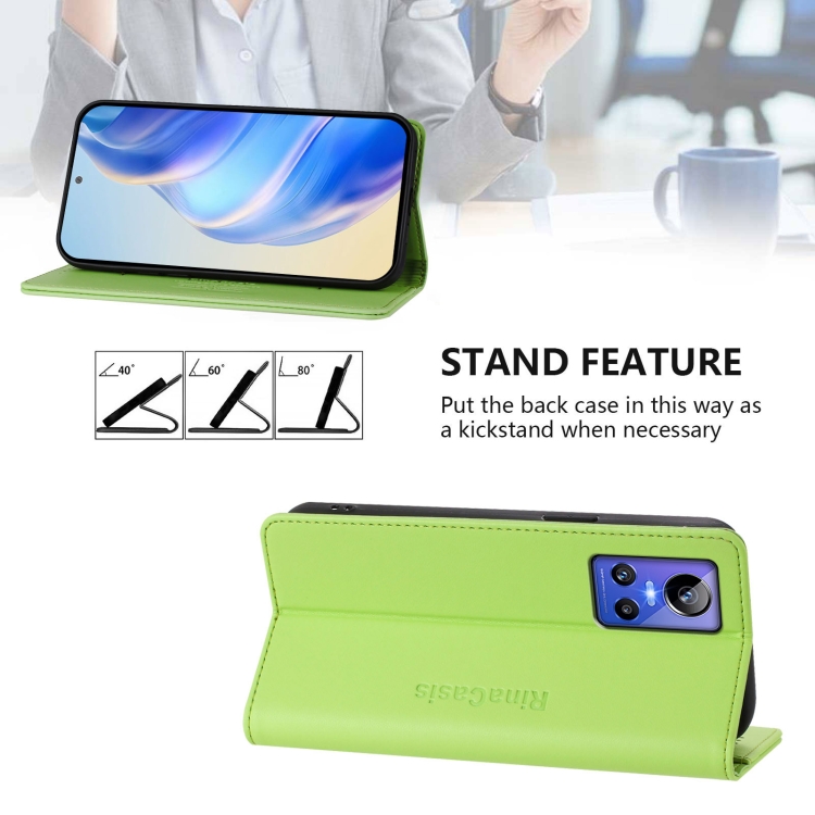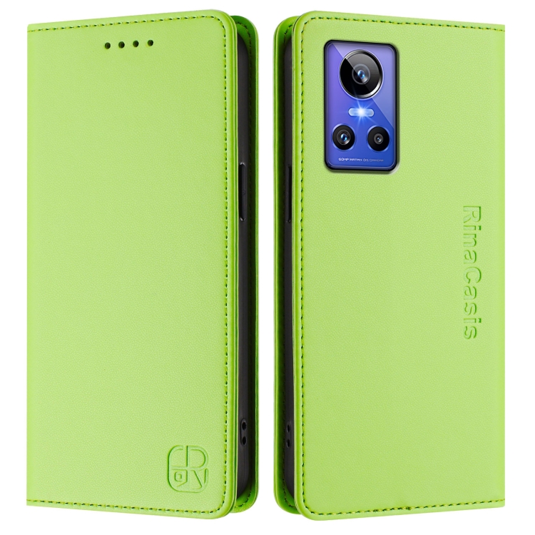 Funda de Cuero con Doble Pliegue y Succión Magnética Rfid para Realme Gt Neo 3 Rc01 (Verde Hierba)