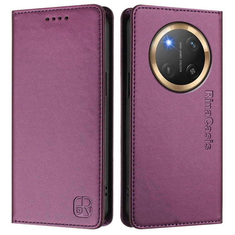 Funda de Cuero Rfid con Doble Pliegue y Succión Magnética para Honor X9C Global Rc01 (Violeta)