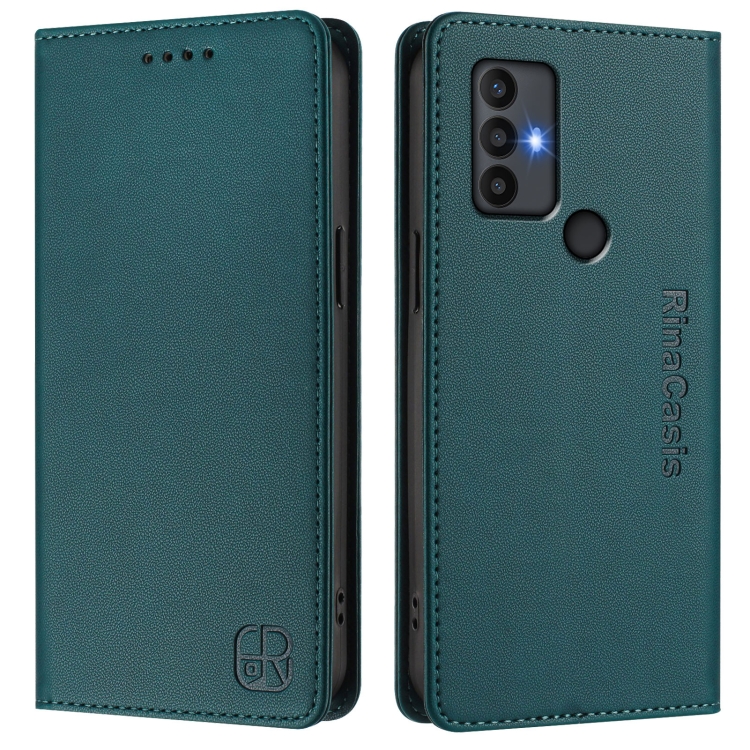 Funda de Cuero con Doble Pliegue y Succión Magnética RFID para TCL 30 SE RC01 (Verde Oscuro)