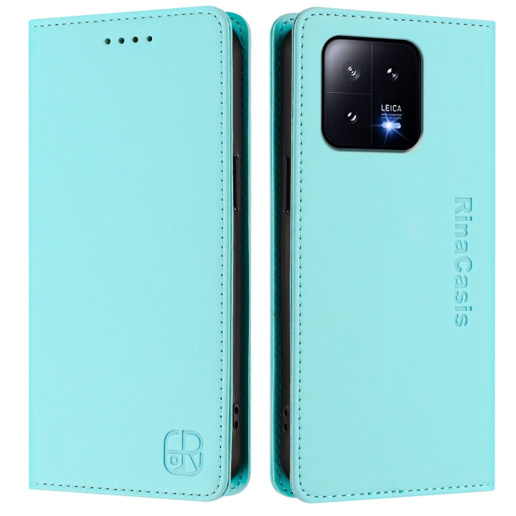 Funda de Cuero con Doble Pliegue y Succión Magnética Rfid para Xiaomi 13 5G Rc01 (Verde Menta)