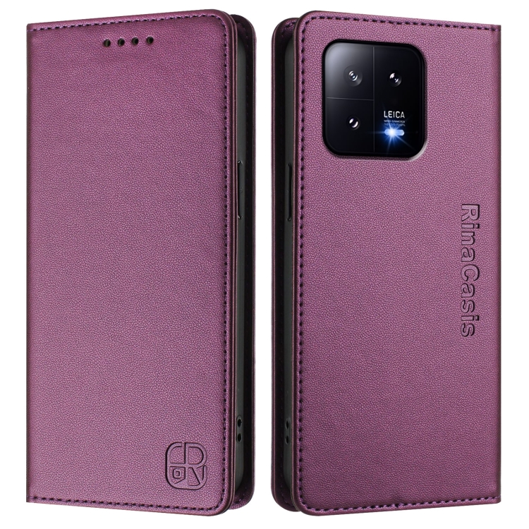 Funda de Cuero con Doble Pliegue y Succión Magnética Rfid para Xiaomi 13 5G Rc01 (Violeta)