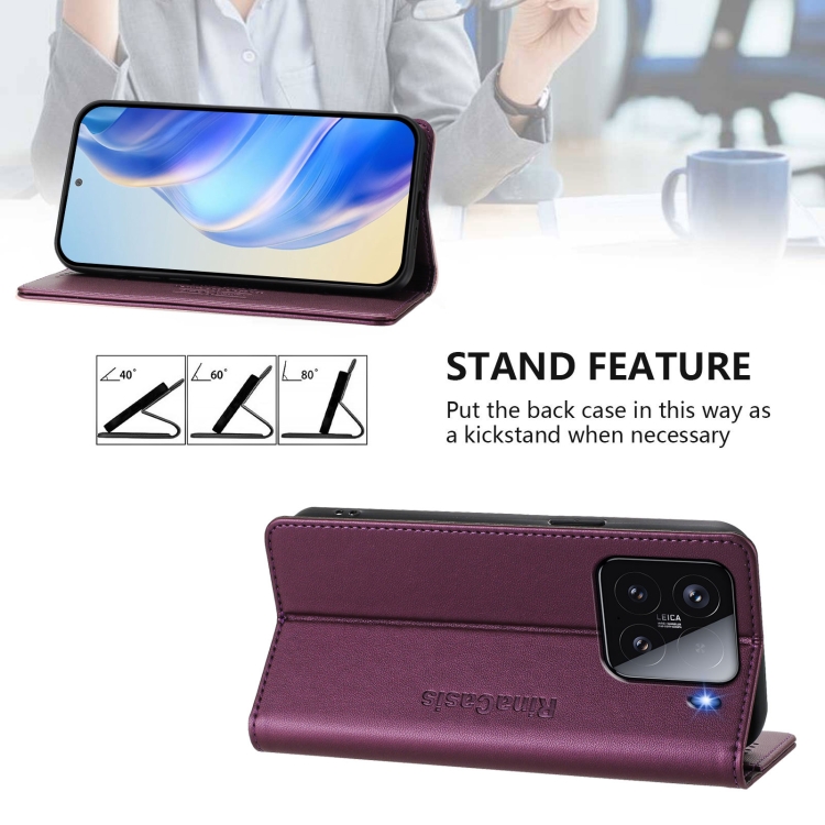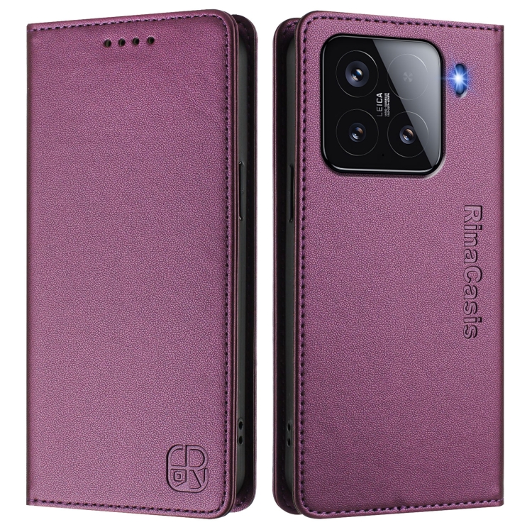 Funda De Cuero Con Doble Pliegue Y Succión Magnética Rfid Para Xiaomi 15 Rc01 (Violeta)