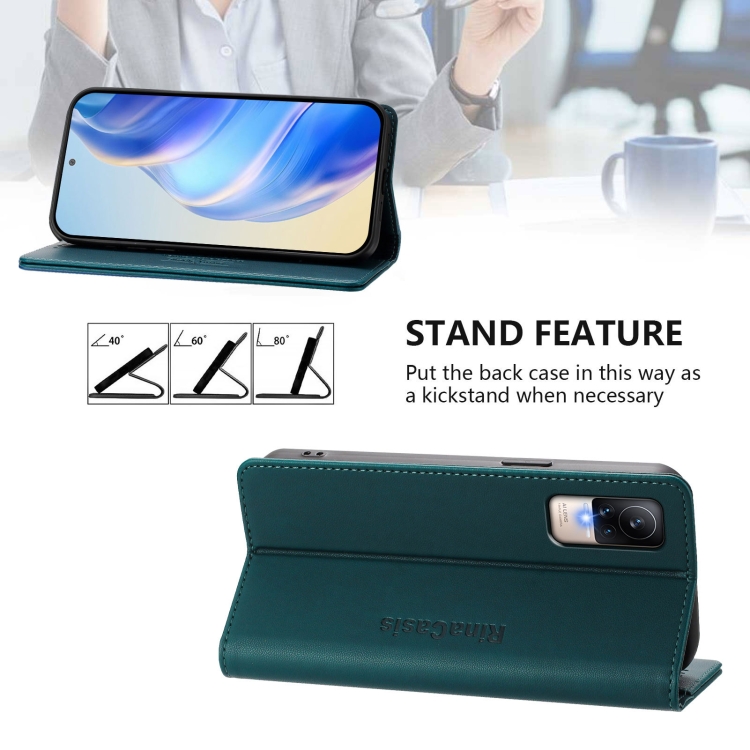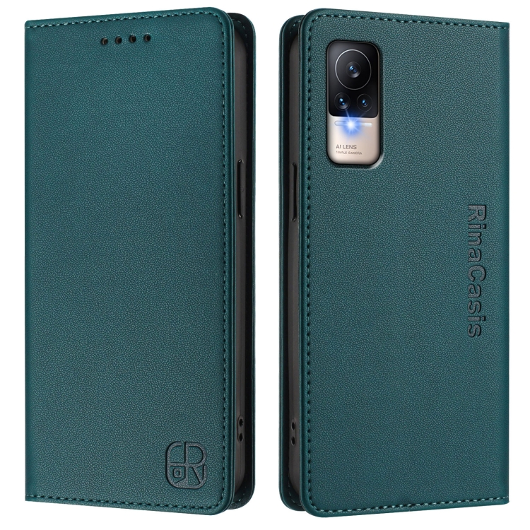 Funda de Cuero con Doble Pliegue y Succión Magnética Rfid para Xiaomi Civi 1S Rc01 (Verde Oscuro)