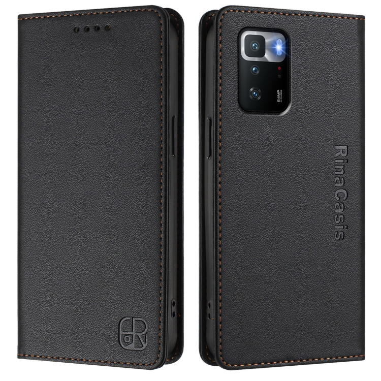 Funda de Cuero con Doble Pliegue y Succión Magnética Rfid para Xiaomi Poco X3 Gt Rc01 (Negro)
