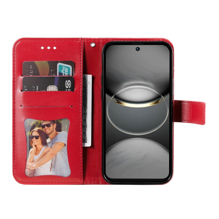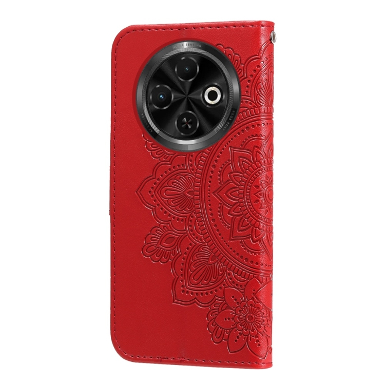 Funda de Cuero para Tecno Spark 30C con Estampado de Flores de Siete Pétalos (Rojo)