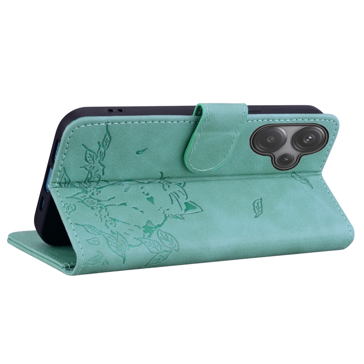 Funda de Cuero con Estampado de Gato Lindo para Redmi 13 4G (Verde)
