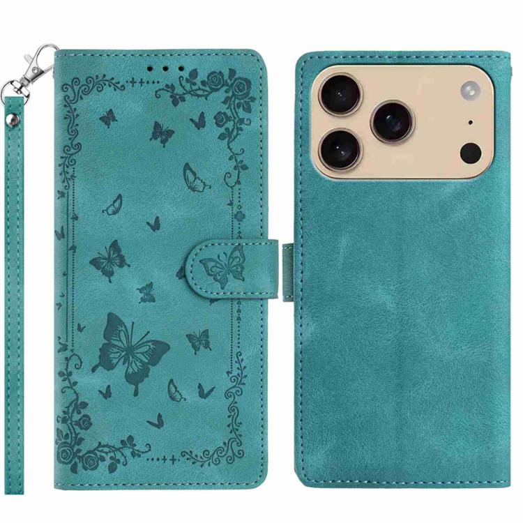 Funda de cuero con estampado de mariposas Secret Garden para iPhone 17 Pro (verde)