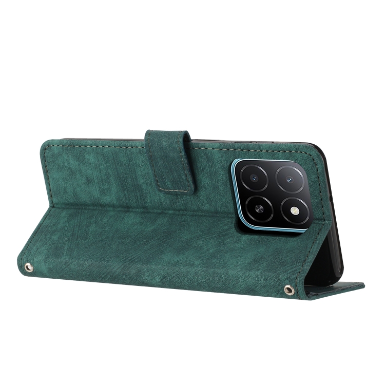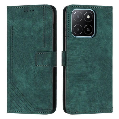 Funda de Cuero para Honor X5B con Estampado de Rayas y Cordón (Verde)