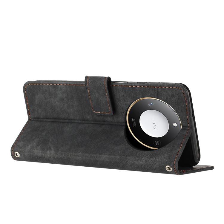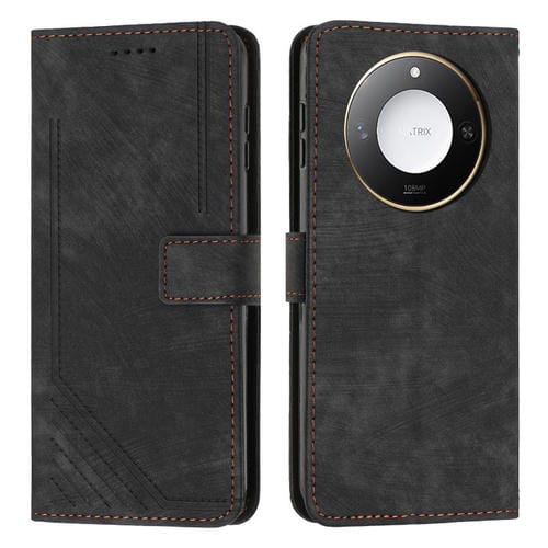 Funda de Cuero Honor X60/X9C con Estampado de Rayas y Tacto Inteligente con Cordón (Negro)