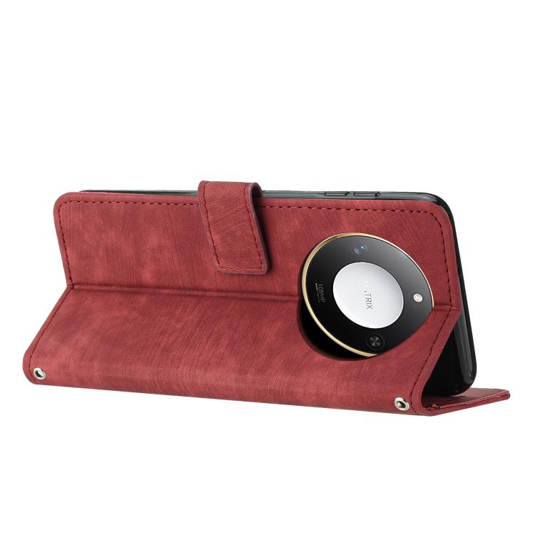 Funda de Cuero Honor X60/X9C Estampado de Rayas Tacto Inteligente con Cordón (Rojo)