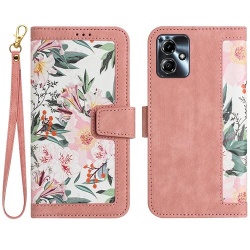 Funda de Cuero para Motorola Moto G54 con Estampado Floral y Cordón (Rosa)
