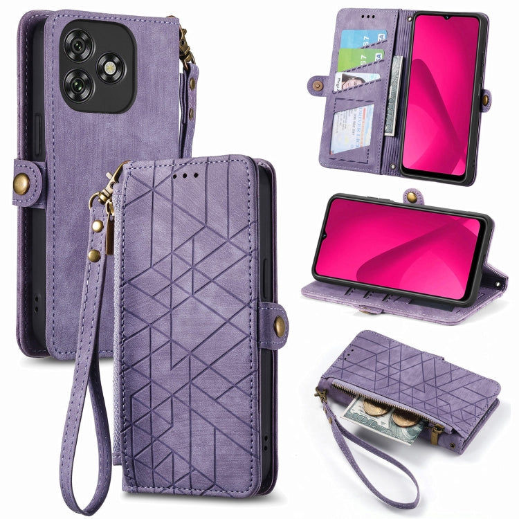 Funda de Cuero con Hebilla y Cremallera Geométrica para Oukitel C53 (Morado)