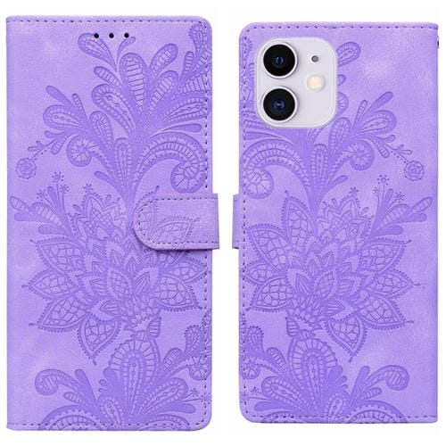 Funda de Cuero con Hebilla Magnética y Diseño Floral En Relieve para iPhone 11 (Morado)