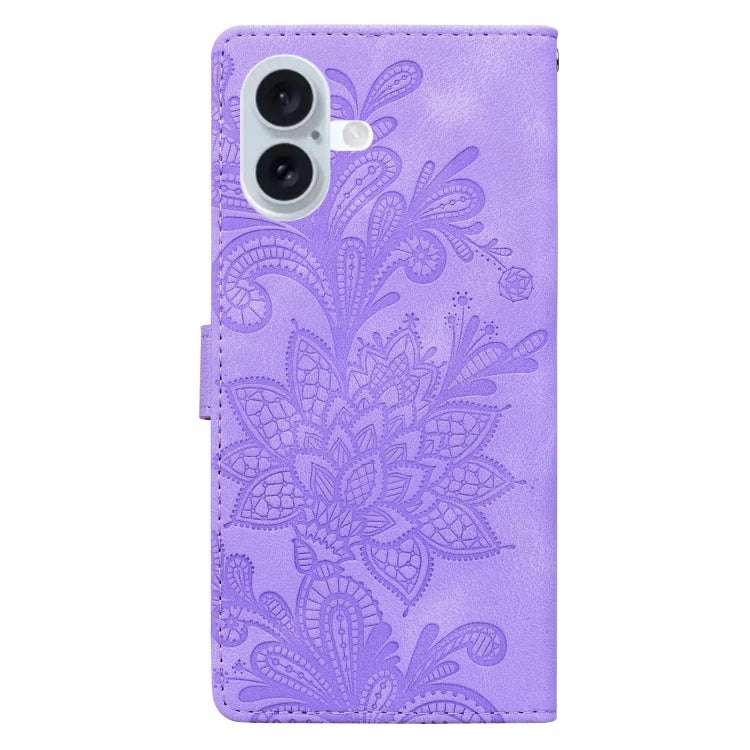 Funda de Cuero con Hebilla Magnética y Diseño Floral En Relieve para iPhone 16 (Morado)