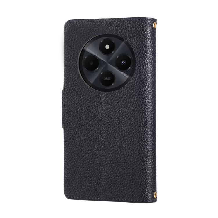 Funda de cuero con hebilla redonda y cremallera para Redmi 14C 5G, con correa cruzada (negro)