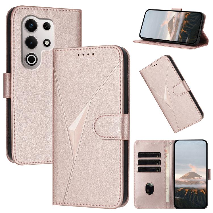 Funda de Cuero con Hebilla y Diseño Triangular para Itel S25 Ultra (Oro Rosa)