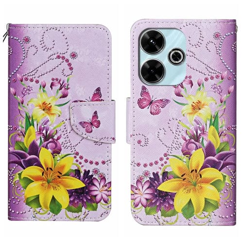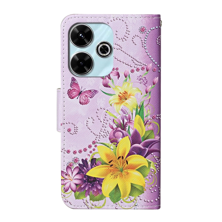 Funda de Cuero con Patrón de Dibujo de Colores para Xiaomi Redmi 13 4G (Mariposa y Flores Amarillas)