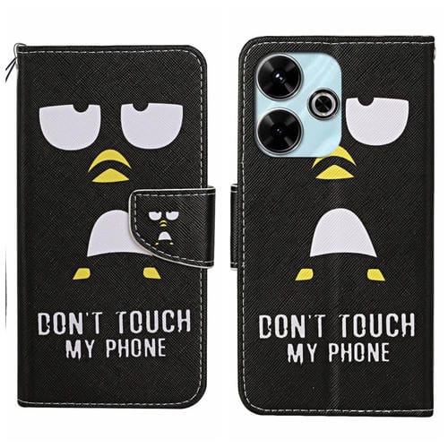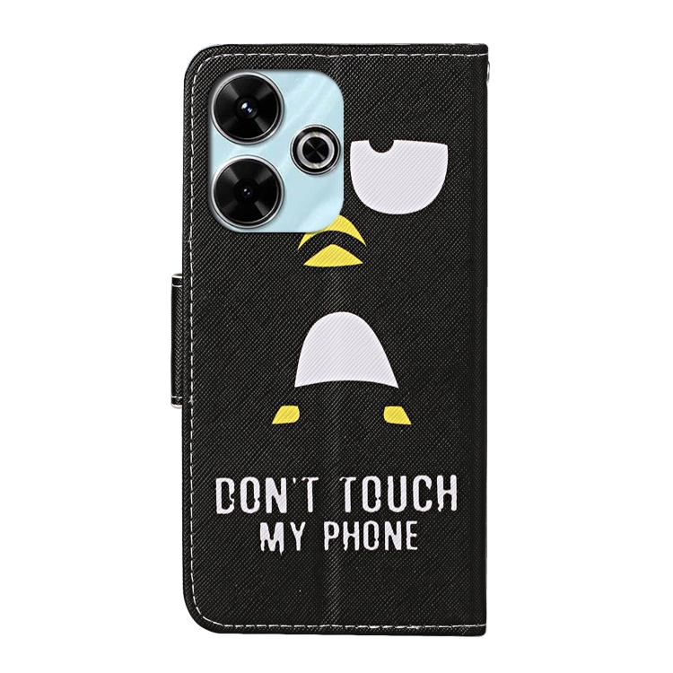 Funda de Cuero con Patrón de Dibujo de Colores para Xiaomi Redmi 13 4G (Pingüino)