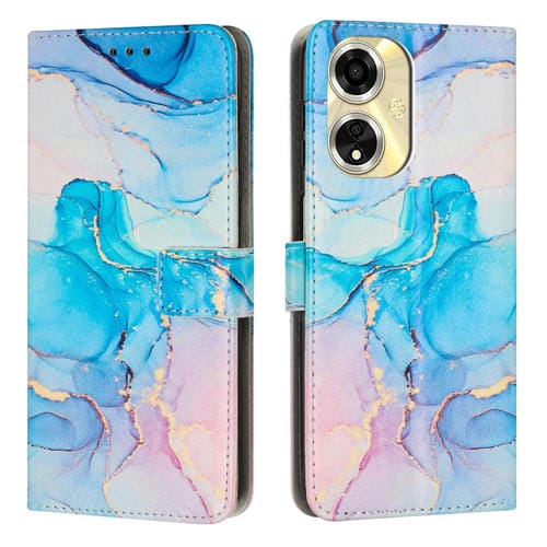 Funda de Cuero con Patrón de Mármol Pintado para Teléfono Oppo A59 5G Global (Rosa y Verde)