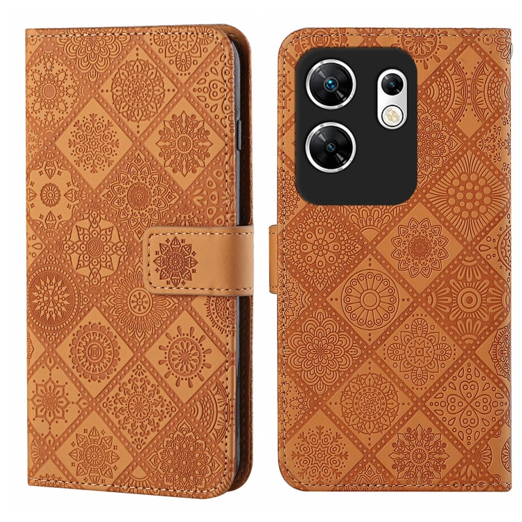 Funda de Cuero con Patrón en Relieve Estilo Étnico para Infinix Zero 30 4G (Marrón)